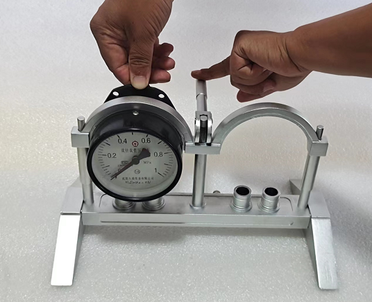 兩個(gè)被檢表位可分別單獨(dú)安裝一支被檢雙針雙管壓力表,也可同時(shí)安裝