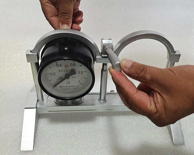 兩支雙針雙管壓力表同時(shí)進(jìn)行檢定。